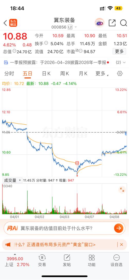 $冀东装备(SZ000856)$怎么看都是一样的低开。10.75元附近震荡的