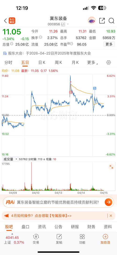 $冀东装备(SZ000856)$量没放够才站不上中轨,再观察一天