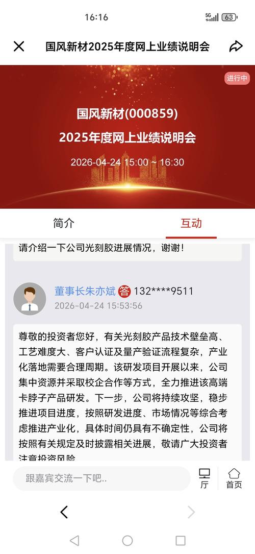 邀您观看:国风新材2025年度网上业绩说明会【全景路演】 直播时间:2026-04-2415:00:00 嘉宾信息:朱亦斌:董事长张家安:总经理王冲:总会计师毕功兵:独立董事杨应林:董事会秘书胡坚:证券事务代表