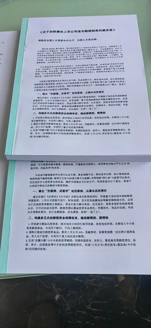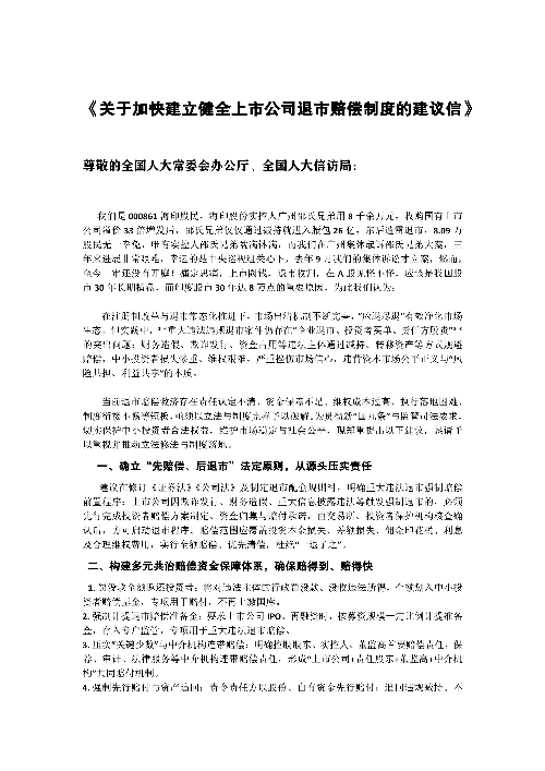 海印股民给全国人大《关于加快健全上市公司退市赔偿制度的建议信》
