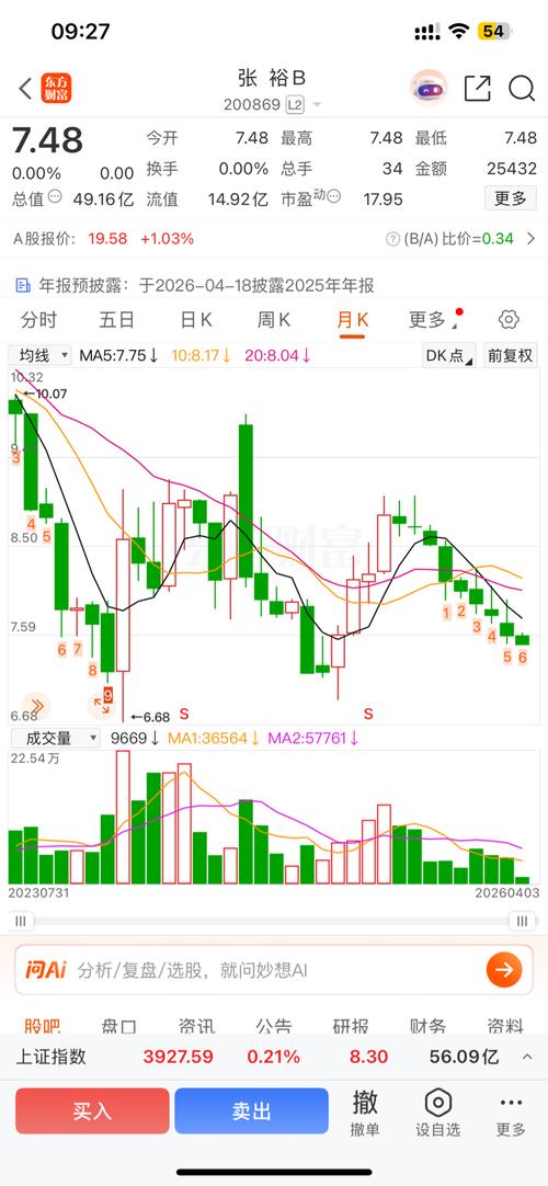 A股18.17元以上,B股8.04元以上都不要介入!A股2亿融资盘还会负隅顽抗3个月左右,但基本面是股价基石,长期偏离是不可能的