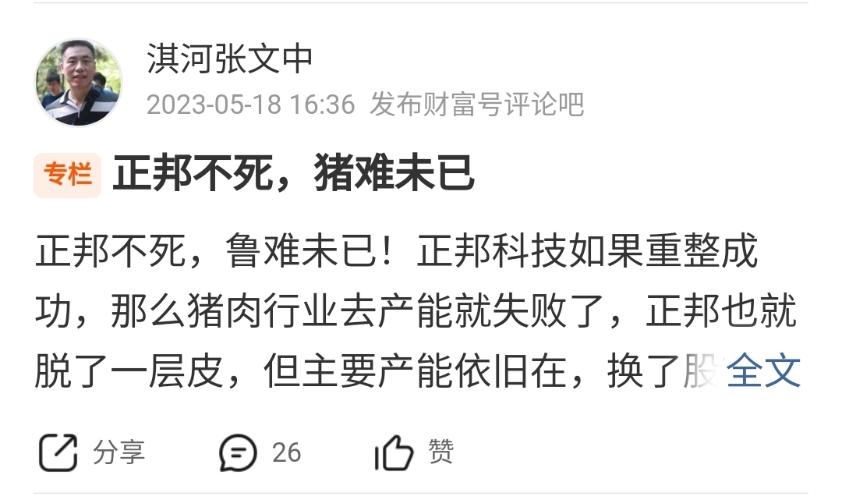 两年前,当市场还在争论猪周期底部长度时,我写了一篇题为“正邦不死,猪难未已”的分析文章,曾指出一个残酷而关键的前景:如果正邦科技通过重整“金蝉脱壳”,那么整个行业的产能出清将宣告失败,漫长的消耗战将成为所有玩家的共同噩梦,猪肉的苦难还会长期持续。 如今两年半过去了,猪肉行业的现状充分证明了我的前瞻性认知。 行业的现实正一丝不苟地沿着这一预判上演。正邦科技已然“新生”,在债务重组和股东输血后,其资产...