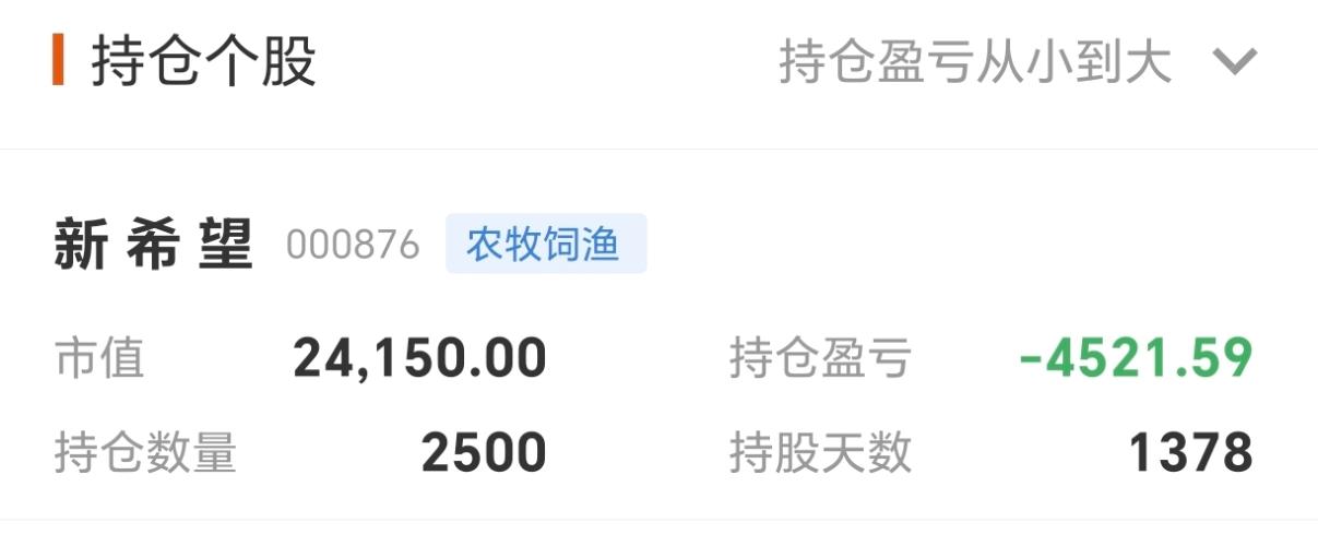 $新希望(SZ000876)$ 早割早投胎,奉劝那些浅套的,赶紧卖了,别跟我一样死扛,有那个资金,当下行情随便买都吃肉,死扛没出路,这条路也不是成功的捷径,此路不通