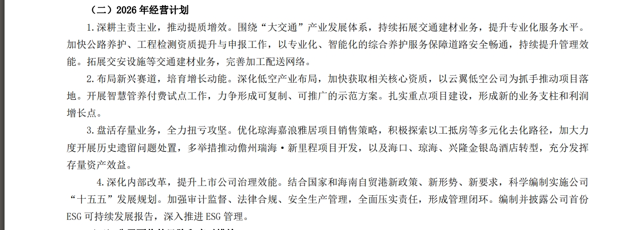 一。自营主业依旧巨亏,投资收益3.6亿,全年净利却只有1.55亿! 二。公司巨资投入建材,但建材营收5亿多,毛利却低得可怜,连建材也亏损! 三。公司吹牛的车路云及低空经济全然不见影子,口号都喊少了,所谓低空经济实质就是无人机巡检修路的! 四。公司所有未来都是传统建材及扫路,连普通的基建公司都比海南高速强!