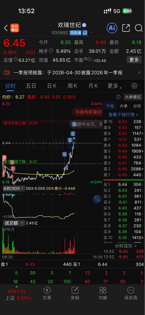 $欢瑞世纪(SZ000892)$完了给我吃掉了,6.29我只卖了5000股啊,37全给我吃完了