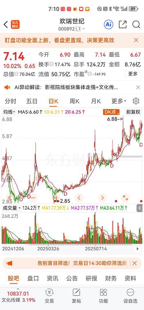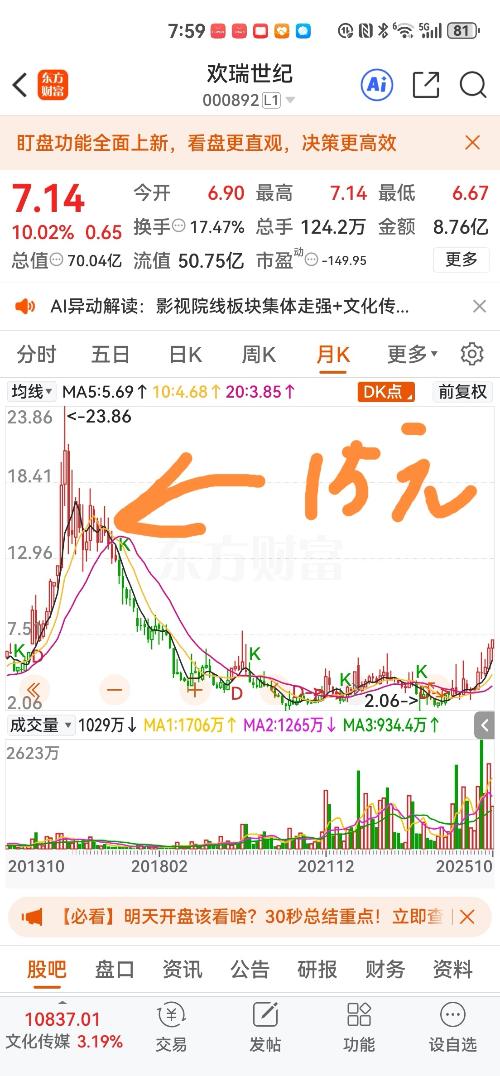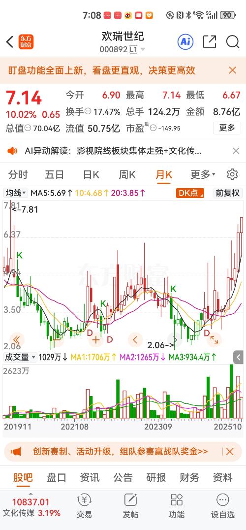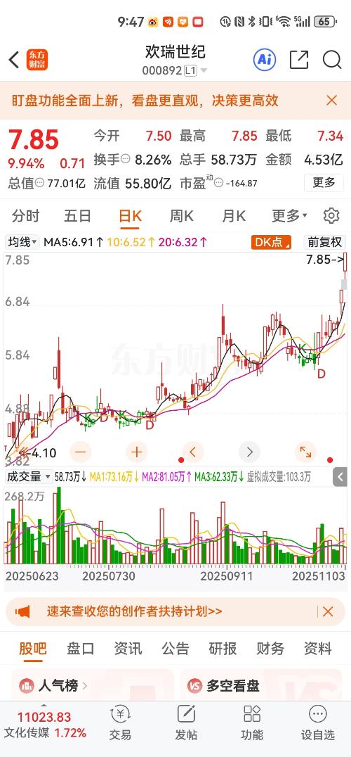 $欢瑞世纪(SZ000892)$ 广电总局“21条”新Z取消集数限制,激活市场对影视公司产能释放的预期。Z策发布后影视板块Z金净流入超百亿,欢瑞世纪作为头部制作公司,自然成为Z金配置标的。另外,欢瑞的业绩也相当给力,2025年前三季度营业收入同比增长123.30%,第三季度收入同比增长216.90%。昨天开盘上车后走势很强势,全天板住,加上后排的助攻,AI传媒还是有板块效应的,今天看竞价强度,如果...