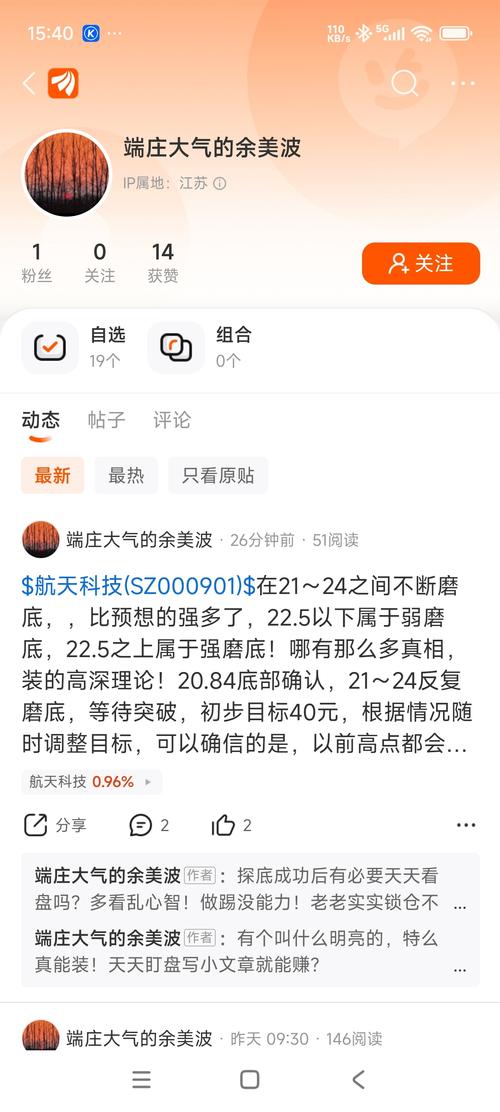 $航天科技(SZ000901)$在21~24之间不断磨底,,比预想的强多了,22.5以下属于弱磨底,22.5之上属于强磨底!哪有那么多真相,装的高深理论!20.84底部确认,21~24反复磨底,等待突破,初步目标40元,根据情况随时调整目标,可以确信的是,以前高点都会最终攻破!!!赚的就是被折磨的钱!赚的就是耐心坚持的钱!哪有那么容易的事情!