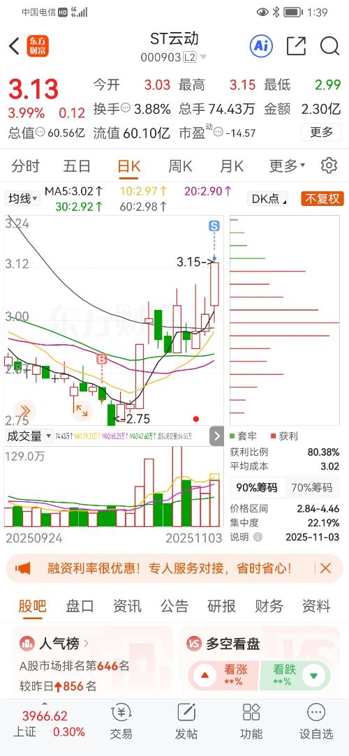 $ST云动(SZ000903)$做t回本,尾盘全清了,接下来再也不碰这玩意了,除了退市没有别的路