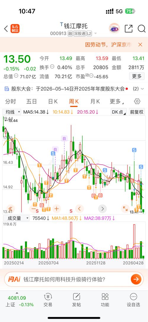 $钱江摩托(SZ000913)$业绩由盈转亏:2026年一季度亏损3892万元。 ·资金持续流出:近5日主力资金净流出超1.3亿元,北向资金持股比例也大幅下降。这说明短期内大资金的态度比较明确,就是在离场避险#股市怎么看#。
