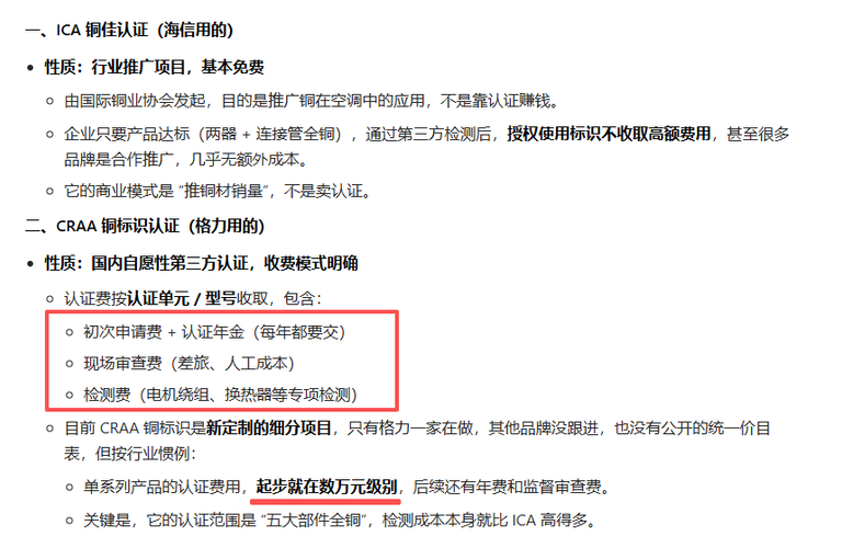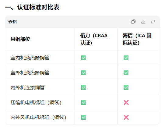 $海信家电(SZ000921)$同为一线大牌,白电三巨头、家电三龙头,凭什么格力拿个自己的CRAA标准,就说别人不够“真铜”? 这2个标准所认的铜部位 目前这2个标准谁在用 2个标准的收费情况 ICA是国际通用标准,海信、美的、海尔全都用,核心铜件一个不少,合规得很。 CRAA是格力自己搞的高标准,就它一家在用,成本高、收费高,纯给自己贴金用的。 别的品牌要是跟着搞CRAA, 成本上去、价格涨上去...