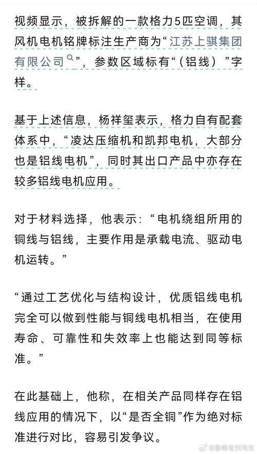资讯 海信高管杨祥玺继续回应“真铜”争议,称格力部分机型用铝线电机