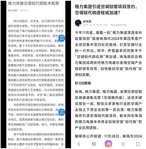 资讯 格力高管深夜连发五文回应海信,“真铜实料”引发空调材质标准争议