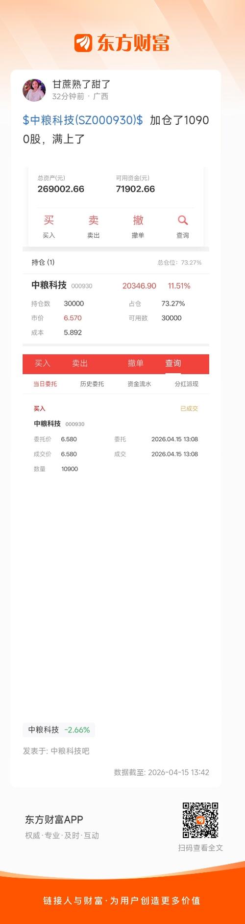 $中粮科技(SZ000930)$洗盘要结束了,大家耐着性子坐稳了。