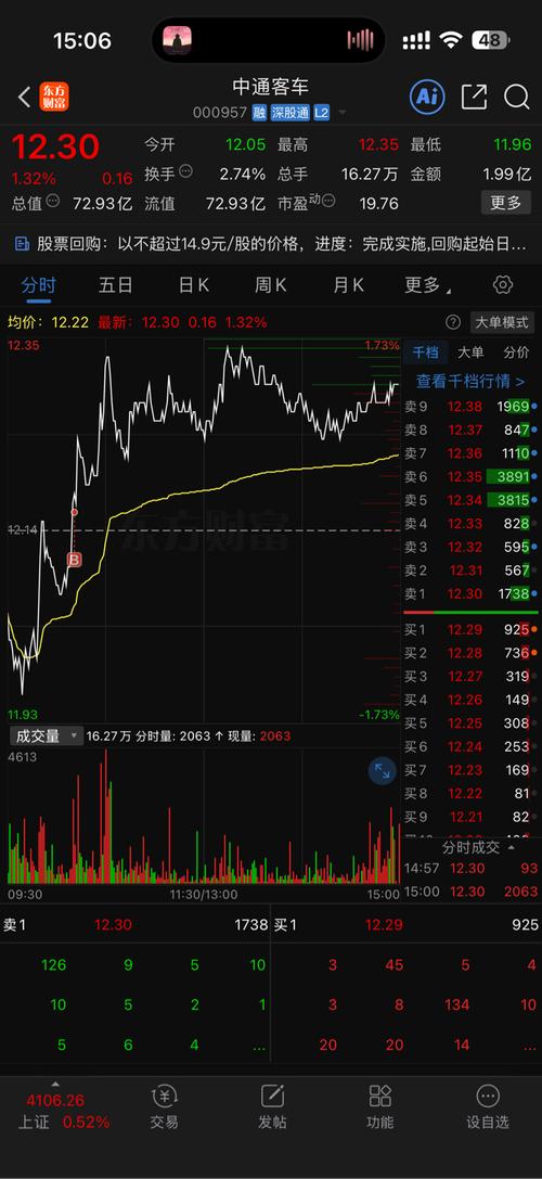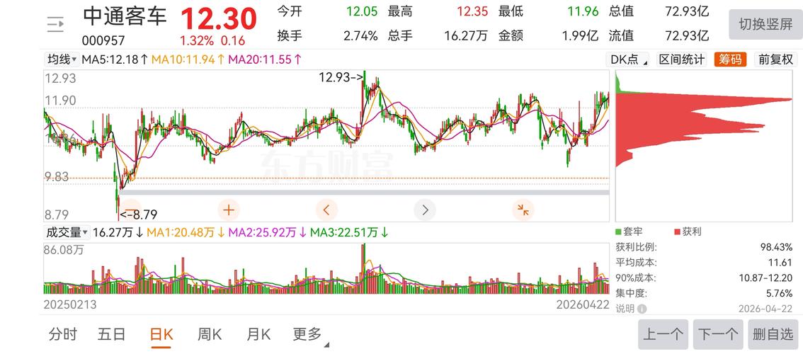 $中通客车(SZ000957)$尾盘12.29出了,看明天什么情况再进。依旧长期看好。