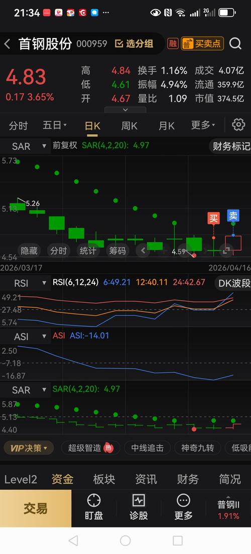 首钢股份,4月15号,建仓4.70,4月16号, 卖出4.80,卖便宜了。