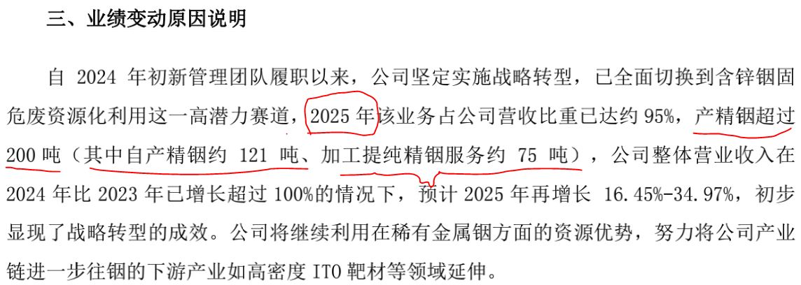 锡业只能从自己的锌中提取铟,所以产量被锁死,看25年锡业锌产量同比减少,相应铟也减少就知道了,年产就百十吨,没有任何想象空间,它不可能为了多生产几吨铟去多生产几万吨锌,多挖几十万吨锌矿石,产能就这么大。 京蓝的主要原料是炼钢高炉的铟灰,按全国每年消耗13亿吨铁矿石和每吨含10克铟计算,理论上有过万吨铟在这些灰渣里,只是含量稀少很难提取,但京蓝马黎阳团队有独创或国际大奖的专利技术可以从中提取出铟,2...