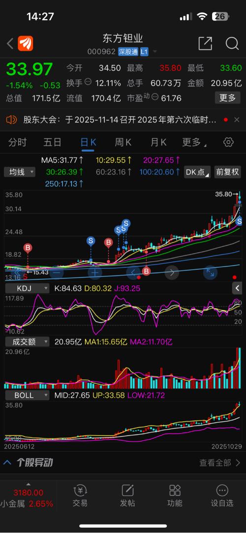 $东方钽业(SZ000962)$这个月解放了上市以来所有的股东,后面熄火的可能性太小了,耐心点吧,到五十问题不大