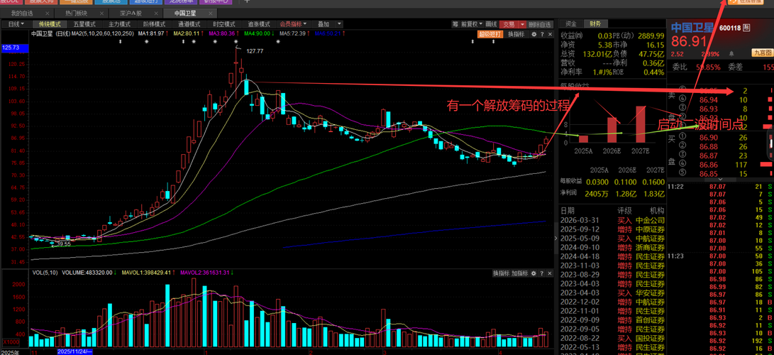 1:对于商业航天这个方向,我是比较非常看好二波行情的,但是我也说过商业航天距离第一波行情时间空间跨度不够,目前才3个月时间的整理,我预期是5-6个月时间。那么商业航天的二波启动时间点,我认为最少还有2个月时间去整理。那么这两个月时间怎么去运行? 我依然拿中国卫星:600118为例!(目前攻击到60日均线,小肉也是肉,可以选择止盈为主) 它会有一个解放这三个月被套筹码的过程,然后再次回落整理,大概率...