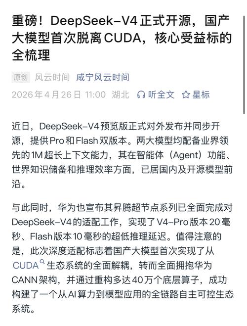 重磅!DeepSeek-V4正式开源,国产大模型首次脱离CUDA,核心受益标的全梳理