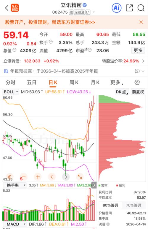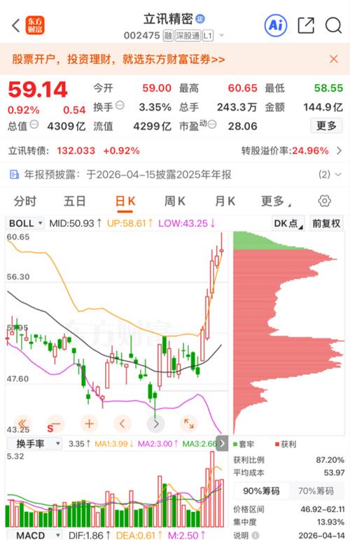 $浪潮信息(SZ000977)$ $立讯精密(SZ002475)$ $北汽蓝谷(SH600733)$ 今天各大指数继续上涨,A股平均股价指数冲向布林上轨,筹码获利比例75.97%,成交额继续放大,全天成交2.4万亿。市场做多情绪稳定。 今天投资组合收益为正。 和而泰,继续在布林上轨附近震荡整理,筹码获利比例46.32%,渐渐走强。 领益智造,继续保持稳步走向布林上轨。 立讯精密,试探突破前期60到...