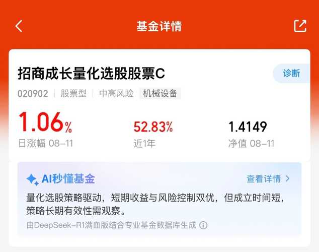 散户的科学投资方案~招商成长量化选股股票C用多因子模型替代人脑择时,近1年52.83%收益回撤比优秀,机器人概念炒翻天?量化基默默赚成长股的钱!