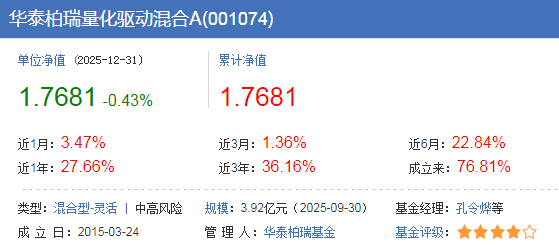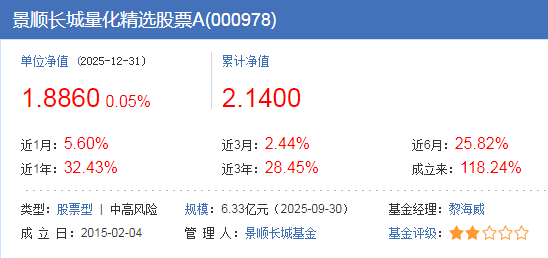 公告 景顺长城量化精选股票型证券投资基金2025年第4季度报告