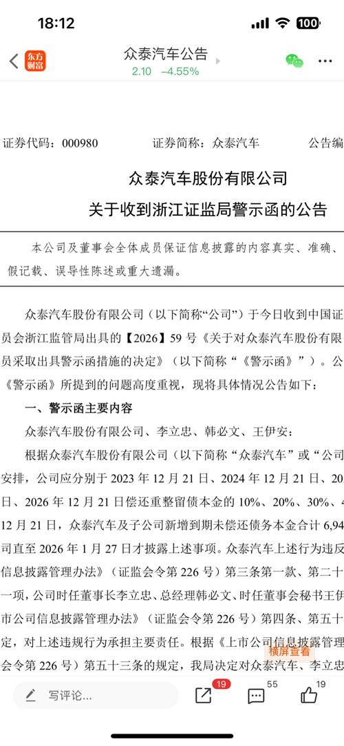 $众泰汽车(SZ000980)$怪不得天天跌,原来是警示函呀