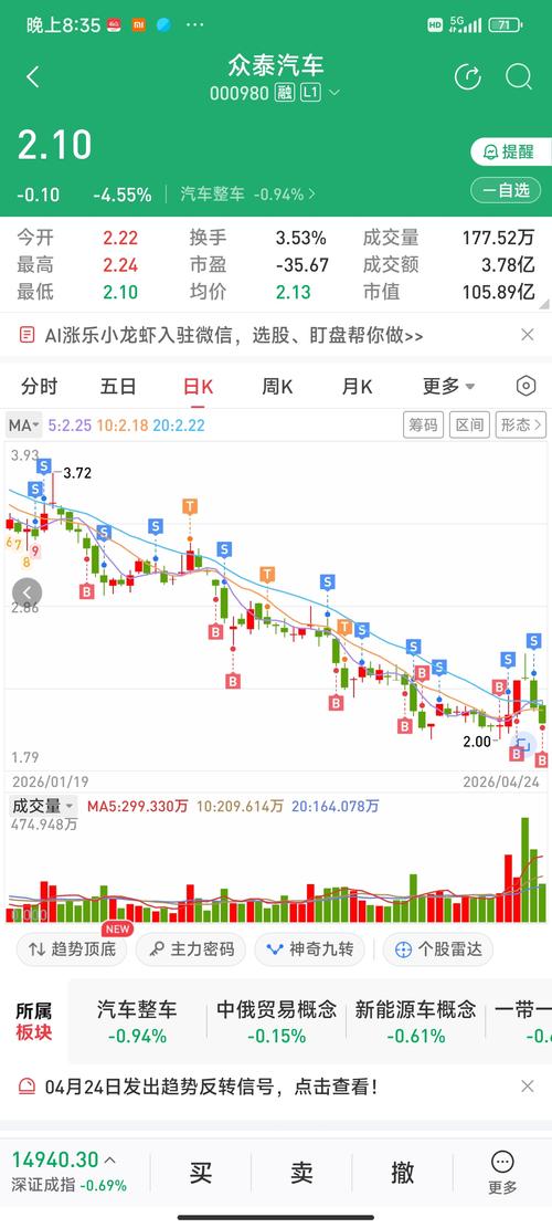$众泰汽车(SZ000980)$周二周三加仓的大佬赶紧及时割肉止损,否则要跌破2.05了