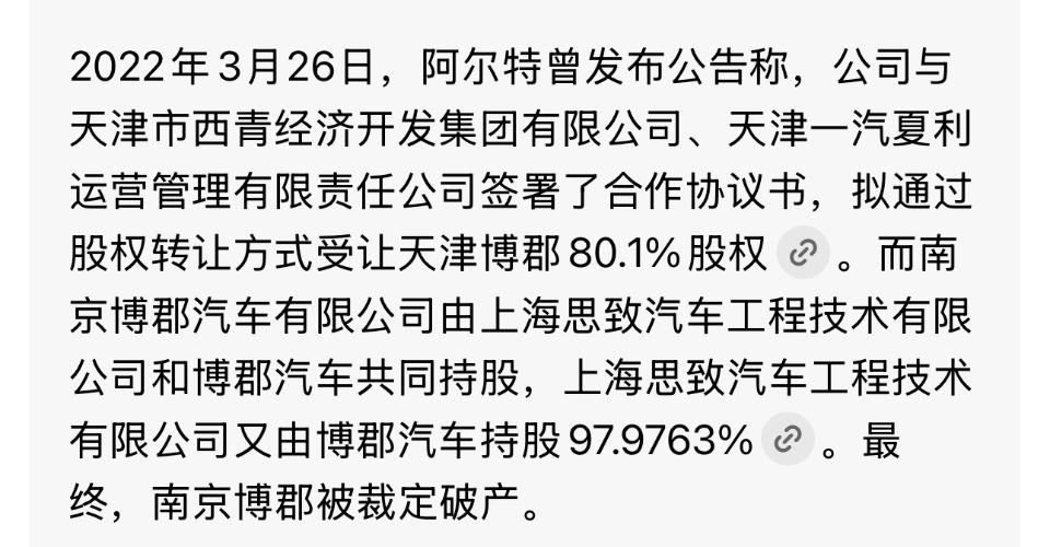 $众泰汽车(SZ000980)$畅所欲言一下,李立忠(奇瑞的人)从中控制过阿尔特汽车技术股份有限公司副董事长。之前阿尔特参加收购思致汽车的技术以及南京思致汽车基地以及技术的收购。众泰购买思致技术以及外观的专利权很有意思的串谋。这个事情可以在2021年左右可以查到相应的消息。2023年左右可以看到众泰参与思致汽车的整体的技术付费。到最后还没有放弃思致汽车的知识产权,宁愿被告也没有放弃思致的技术产权。...