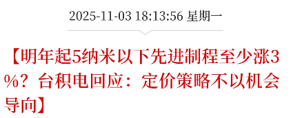 A股盘前传来重磅消息,全球晶圆代工龙头台J电的涨价传闻引发市场关注。 据悉,台J电自2025年9月起已陆续通知客户,计划从2026年1月起对5纳米以下先进制程启动连续四年的涨价计划,年均涨幅约3%-5%,对于这一传闻,台J电虽回应“不评论市场传闻和价格问题”,但明确其定价策略以“策略导向而非机会导向”。 涨价传闻的背后,是一个规模高达60000亿的蓝海市场正在加速成型。数据显示,2025年全球芯片...