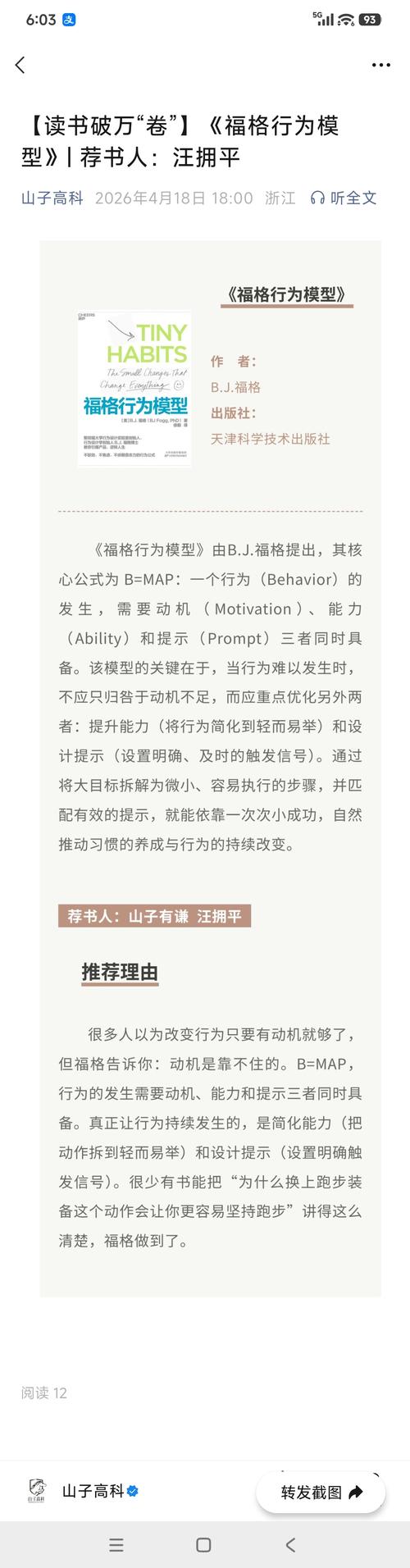 【读书破万“卷”】《福格行为模型》| 荐书人:汪拥平