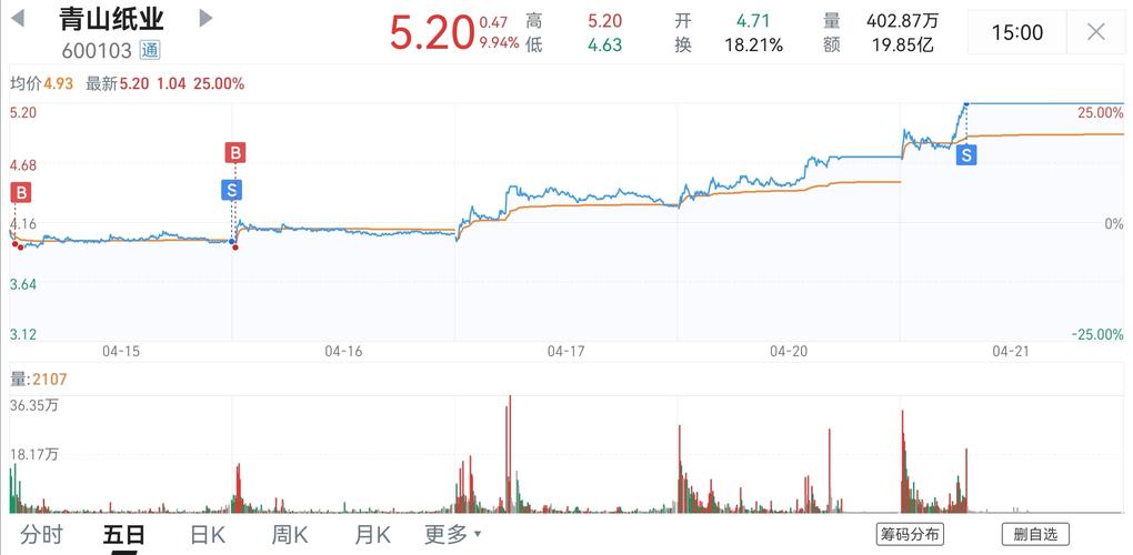 今作:青山纸业,5.20元板减;山子高科,4.03元建埋伏底仓: $青山纸业(SH600103)$青山纸业(2本,4本,8变),连板加速了,复合预期!仓位重,5.20元板减一成仓,持续看好! $山子高科(SZ000981)$山子高科(7本,8本,9变),持续缩量调整,处于底部区域,有反弹预期,4.03元买入底仓!