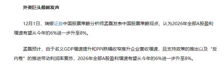 早评市场环境分析: 12月开门红,市场放量延续上周的修复行情,上证指数重回3900。从成交量上来说,8月到现在,每次接近1.5至1.6万亿左右,市场就有出现了阶段性修复。 市场放量上涨,情绪回暖,但上方缺口仍未突破,距离缺口上沿仅差12个点左右,走突破是大概率事件。突破后能否放量,是我们接下来要关注重点的地方。 市场也是在股吹做多气氛。12月1日,瑞银证券中国股票策略分析师孟磊表示,2026年A股...