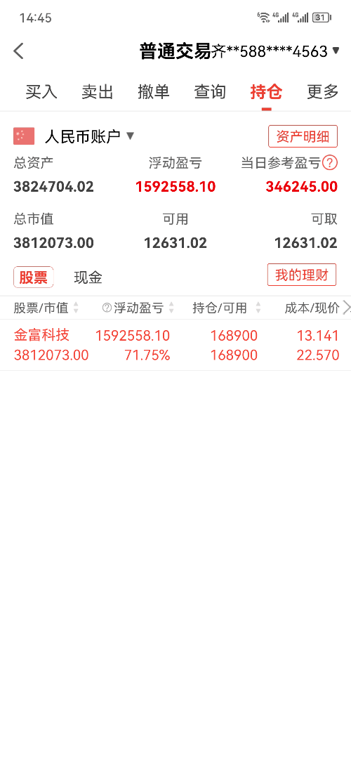 ,带我进了3万股金富科技,翻倍了,躺赢就是舒服