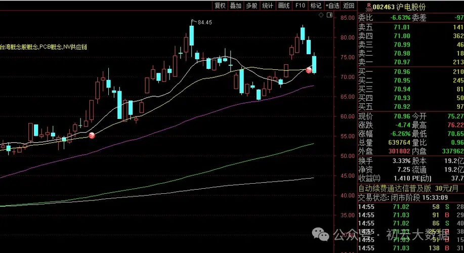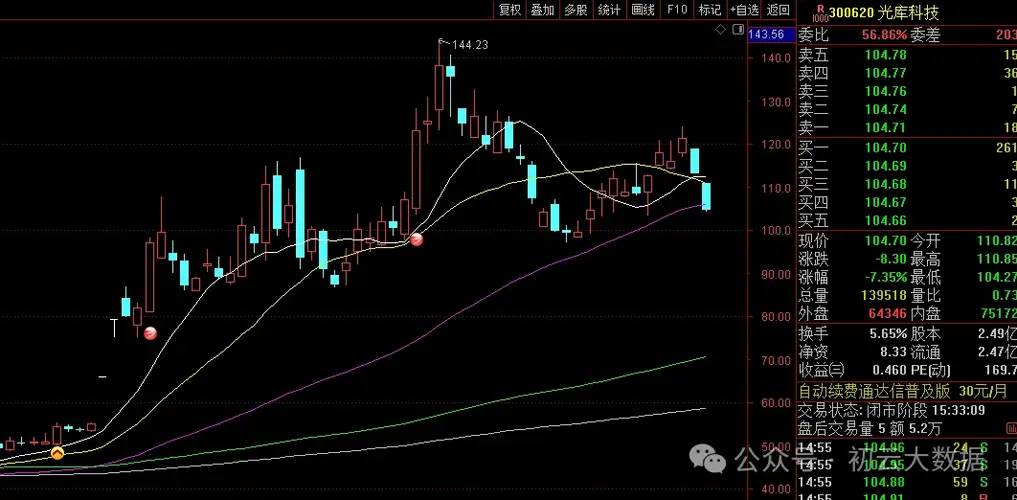 初云大数据 更新于 今天 00:01 488次浏览 量化策略,打造属于我们的安全系统 今日市场震荡调整,创业板指跌超2%。沪深两市成交额2.32万亿,较上一个交易日缩量1039亿。板块方面,医药、影视院线、AI应用等板块涨幅居前,保险、存储芯片、CPO等板块跌幅居前。。 先来说一下今天的操作情况,今天盘中有3个老仓触发了卖出机制,这就是我们策略的保护机制。下面我们具体说说,首先是光库科技,我们头一天在秘密基地公布的ATR卖出价格是109.48。 盘中跌破,我们就直接触发卖出策略,最... 15