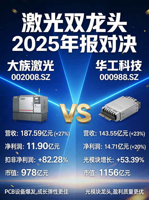 2025年,中国激光产业的两只"大鹏"——大族激光与华工科技,终于等来了属于它们的风。 两年前,笔者曾用"春光懒困倚微风"来形容整个行业的复苏态势——春日虽暖,但企业们还"懒困"在转型的瓶颈期,只能"倚微风"寻找机会。一年前,我又用"万紫千红总是春"来展望——华工科技市值首次超越大族激光,"激光市值第一股"易主,我开始担忧大族的"脱实向虚"和研发效率。而今天,当AI算力需求如海啸般席卷全球,这两家...