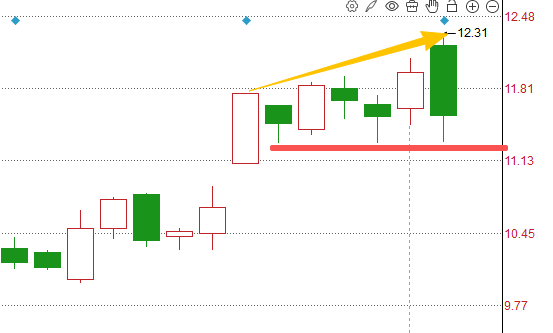 这个票开盘直接走低,差不多打到了收敛三角形的下沿然后止跌反弹,我差不多也是止跌反弹后不久进的,之前也是计划在三角形的下沿获得支撑的话就上车。不过后面这个票冲高刚刚翻红就又回落了,这也跟整体CPO这块走弱有关系。这个票今天虽然调整,但量能明显萎缩,显示出这里抛压较小。接下来还是关注三角形下沿的支撑,我想把止损稍微放宽一点,就在20天线和30天线附近,这个位置应该也有较强的支撑,不跌破这两条均线的话就...
