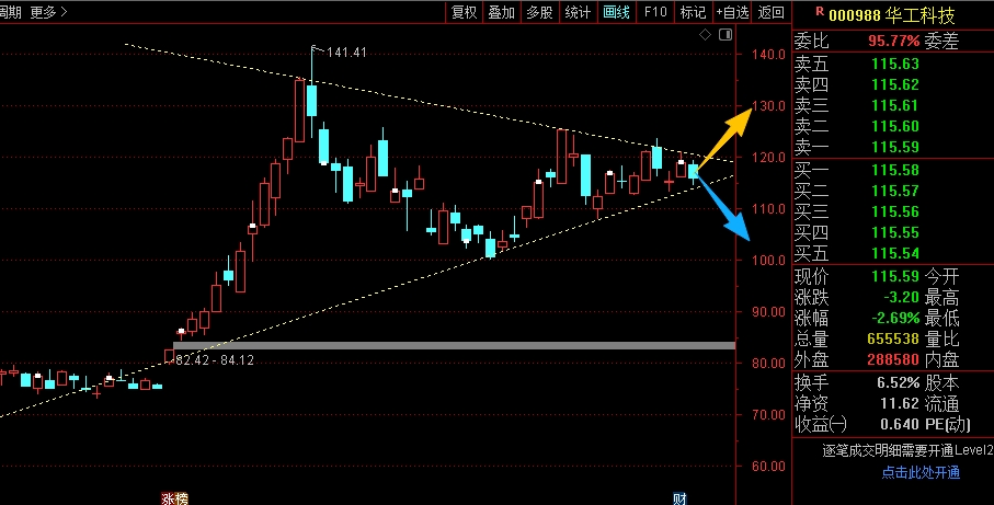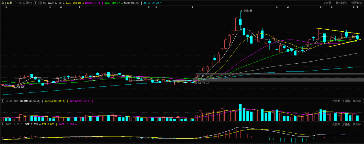 $华工科技(SZ000988)$中期趋势整体比较稳健,近期高位回落震荡整理后,目前主要是观察一个三角收敛形态完成后的方向选择,能稳住就还不错,但如果有效跌破,就要注意破位向下调整的风险了,防着破位后连续下杀的调整动作,严格控制仓位应对,不要随意加仓抄底。