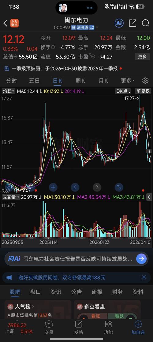 $闽东电力(SZ000993)$2026.3.26-17.27元,2026.4.10-12.12元,10个工作日回调30%!!!17.27对应对子顶,12.12对应什么?大涨不奢求企稳就行