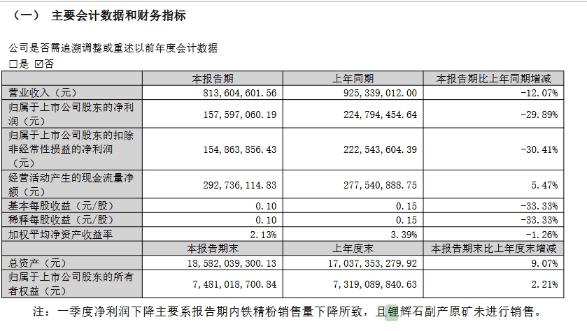 资讯 大中矿业:一季度净利润1.58亿元 同比下降29.89%