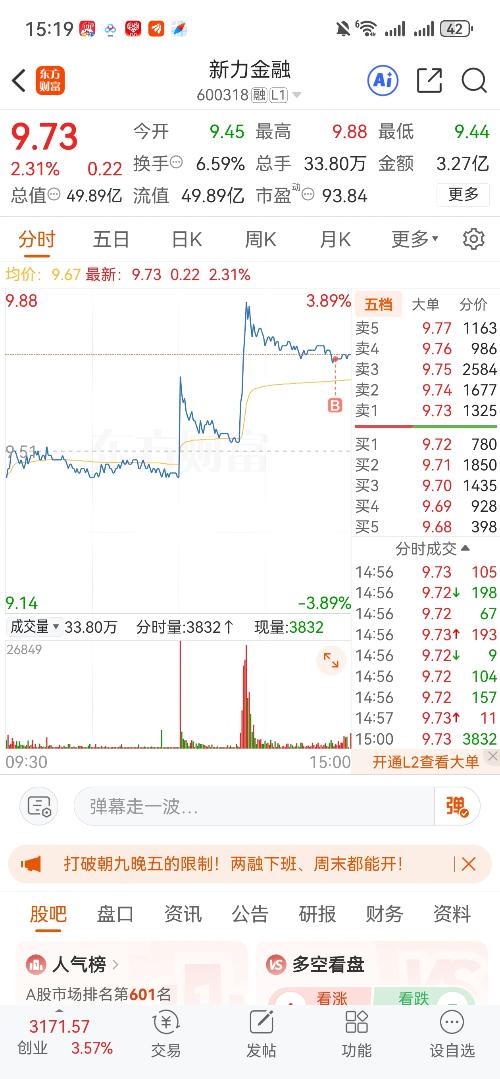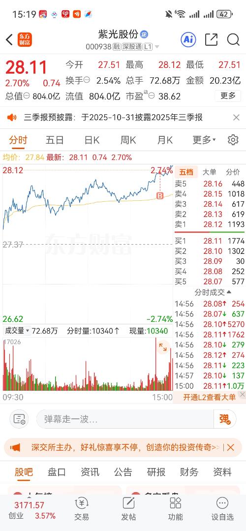 $新力金融(SH600318)$$中旗新材(SZ001212)$$紫光股份(SZ000938)$ 今天尾盘分别买了这三只,在长城证券和新力金融之间选了新力金融,感觉下周证券能涨。 中棋新材是因为看见它的可转债涨的挺好,我就买了正股。 紫光股份算抄底吧。 最后这只一周就拿这三只了。