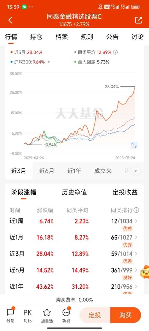 同泰金融精选股票C(013491)真牛到家了!四连涨在金融精选行情里闪瞎眼,专注稳定币值没话说,重仓龙头券商有一套,今日今日涨幅1.15%。去年冠军风采依旧,调仓灵活没毛病,现在上车机会难得得很$同泰金融精选股票C$