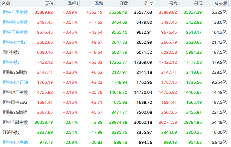 港股低开高走,公用指数强势拉升,科技、工商、银行紧随其后