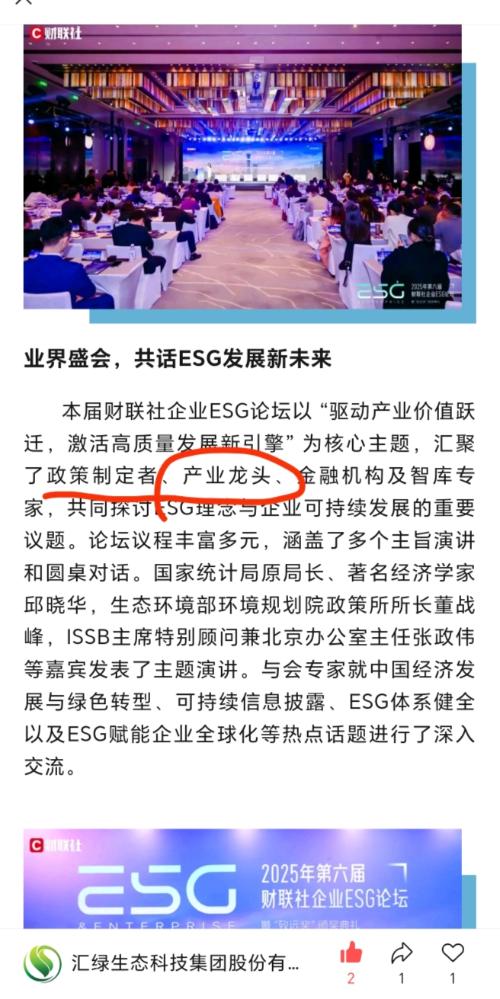 $汇绿生态(SZ001267)$产业龙头,不错