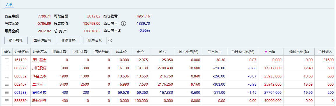 $川润股份(SZ002272)$ $二六三(SZ002467)$$豪鹏科技(SZ001283)$纳指十连阳气数殆尽,大A高开低走蓄势待发。大A真的是在走自己的独立行情,高开十有八九就得低走。最气人的是我账户也没高开啊,低走可是跟的挺麻溜。总是抱有期待,导致冲高的时候不舍得买,跌一点就想买,T也做不好了。好在盘中管住手没乱开仓,还是坚定中长线了。豪鹏当短线做。太难了一天天的。