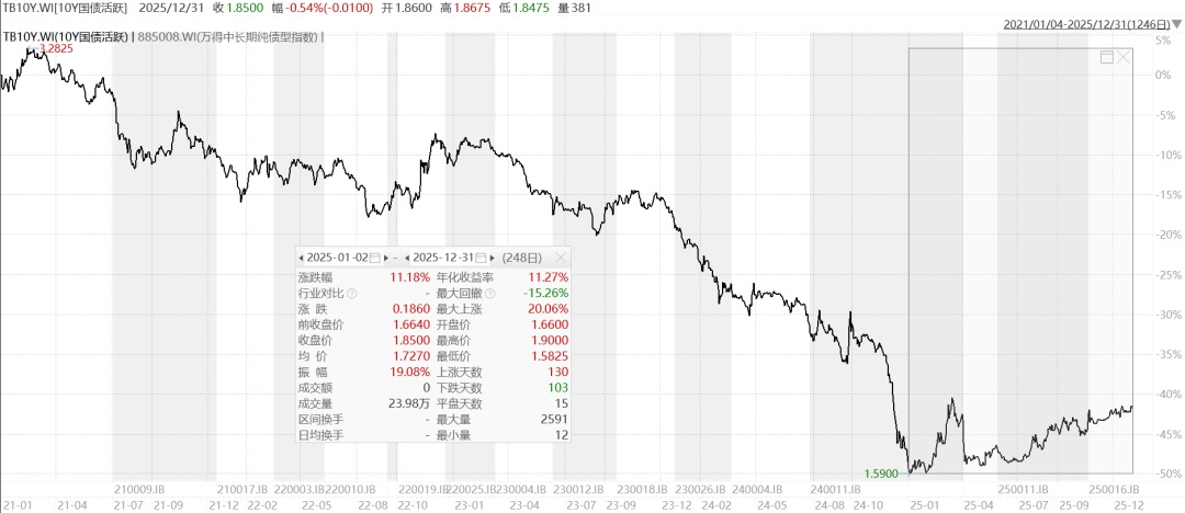 ——2025年固收类基金表现整体回顾和固收类TOP50榜单总结 本文盘点一下2025年固收类基金的整体表现,并公示2025年固收类TOP50榜单的表现。 2025年固收类市场回顾 去年我们的总结文章就提到了,2024年是债牛,但是2025年将难以维系。 正如我们去年预测的那样,2025年长期国债收益率开始剧烈波动,十年期国债收益率上半年在底部来回震荡,从1.59%震荡回升至1.85%。 下图为近5...