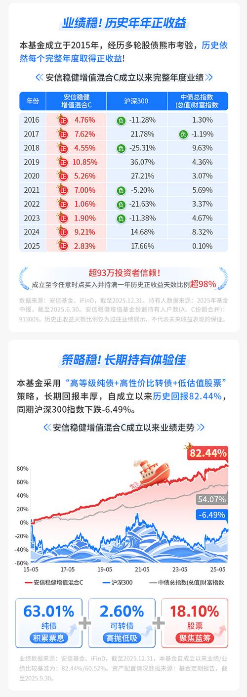 安信稳健增值采用“高等级纯债+高性价比转债+低估值$$股票”策略,自成立以来经历多轮股债熊市考验,历史年年正收益! $安信稳健增值混合A(OTCFUND|001316)$ $安信稳健增值混合C(OTCFUND|001338)$