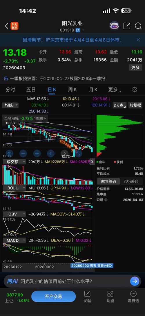 $阳光乳业(SZ001318)$大股东在1月减了3%的股份,成本出货14.65,打九折就是13.6左右。SB主力拉了让2.2w小散赚钱出局。目前70%多筹码在手,刚减持完拉不动