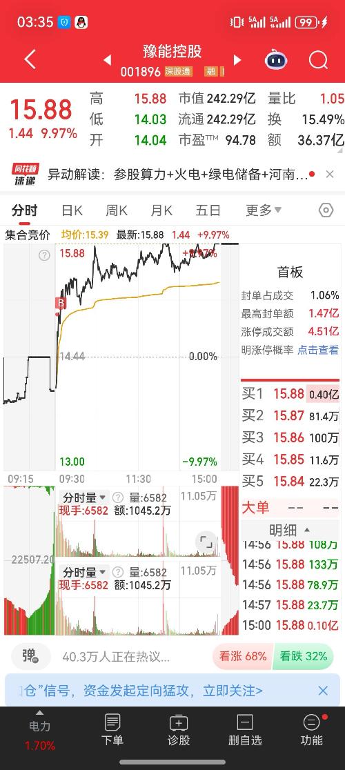 资讯 豫能控股(001896)龙虎榜数据(03-06)