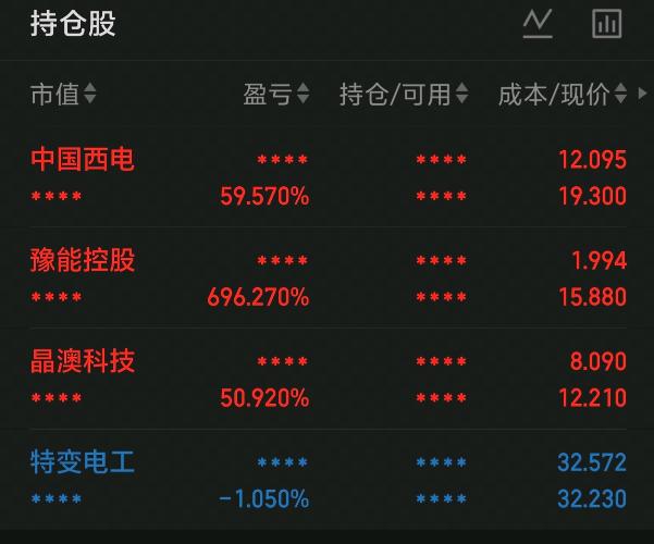 $特变电工(SH600089)$ $豫能控股(SZ001896)$ $中国西电(SH601179)$ 1.中国西电(601179) 核心逻辑:特高压设备龙头,受益于国家电网特高压投资加速,2025年中标多个核心项目,在手订单充足。 -当前状态:浮盈59.57%,成本12.095元,现价19.30元。 短期:可继续持有,关注20元整数关口压力,若放量突破可看高一线;若跌破18元,可减仓锁定部分利润。...
